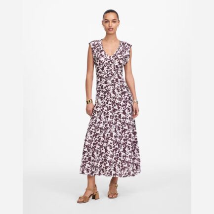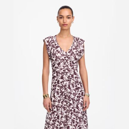 Madewell Froncé Manches De Flottement Midi Womens Robe Beige / Chocolat