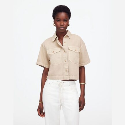 Beige Madewell Boxy-Cargo Poche À Bouton Womens Shirts