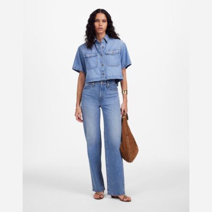 Bleu Madewell Boxy-Culture De Bouton-Up Womens Shirts