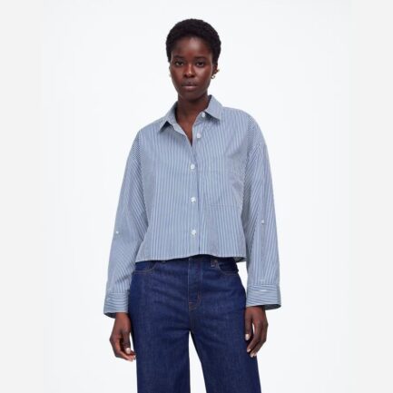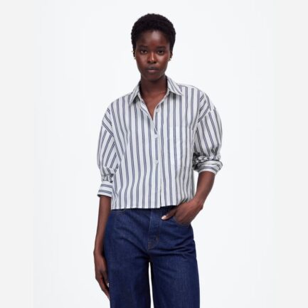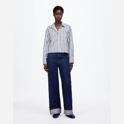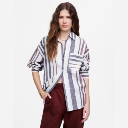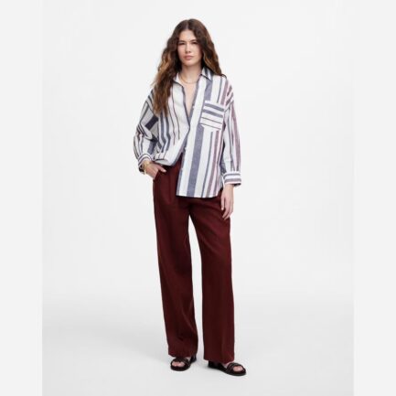 Bleu / Blanc Madewell Surdimensionné De Bouton-Up Womens Shirts