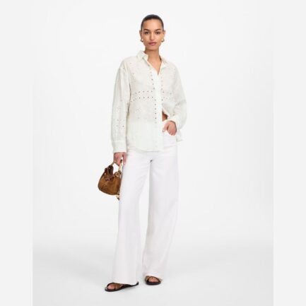 Blanc Madewell Brodé Surdimensionné De Bouton-Up Womens Shirts
