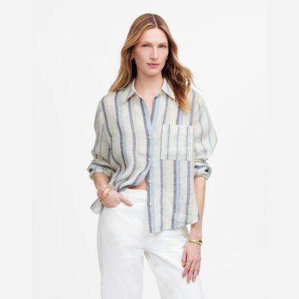 Madewell Froncé Bouton En Lin-Coton Womens Shirts Blanc / Marine