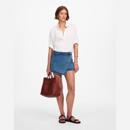 Madewell Reistor Chevauchement Midi Jupe Femmes-Blanc / Bleu