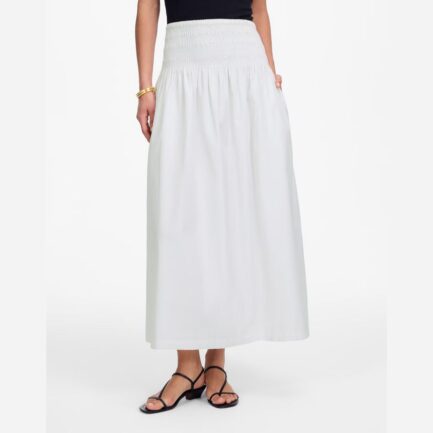 Blanc Madewell Smockée-Taille En Popeline Midi Jupe Femmes
