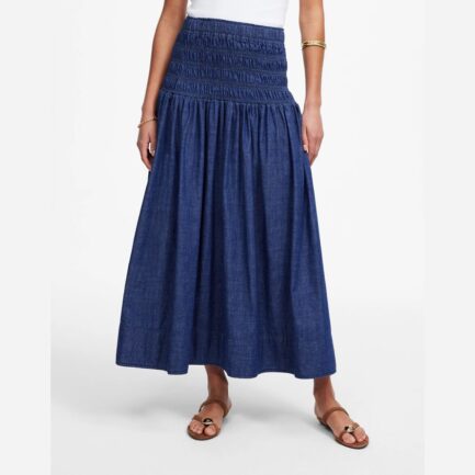 Blue Womens Madewell Smockée-Taille Denim Jupe Midi