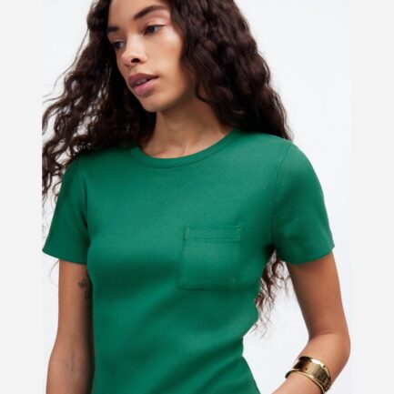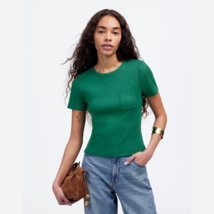 Madewell Côtelée Encolure Ras Du Cou Poche Womens T-Shirts Vert