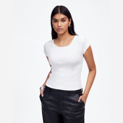 Womens Madewell De Régénération De Coton Côtelé Cap-Sleeve T-Shirts Blancs