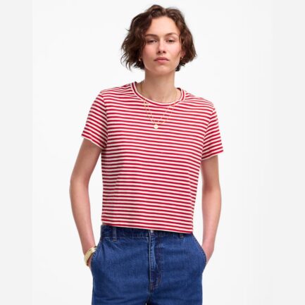 Red / White Womens Madewell Slub Boxy-Crop T-Shirts
