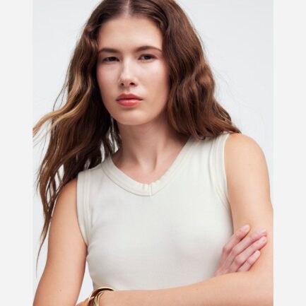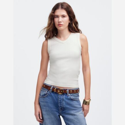 Womens Madewell De Régénération De Coton Nervuré Haute V-Débardeur À Col Blanc