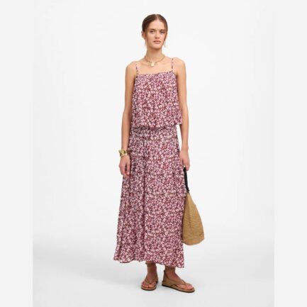 Womens Madewell Froncé Squareneck Réservoir Rouge Foncé / Beige