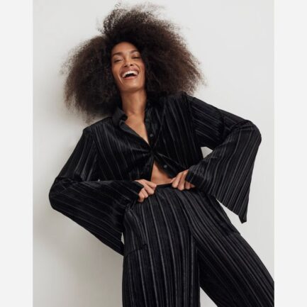 Noir Madewell Volants Pintucked Longue Sleeve Top Womens