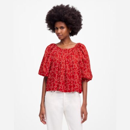 Red Womens Madewell Froncé Feuilletée-Haut À Manches