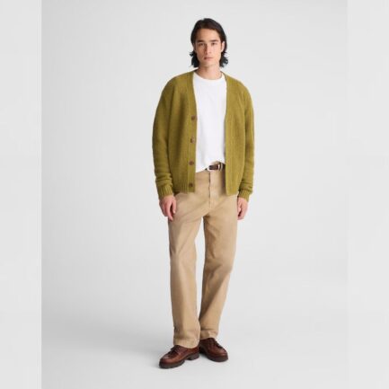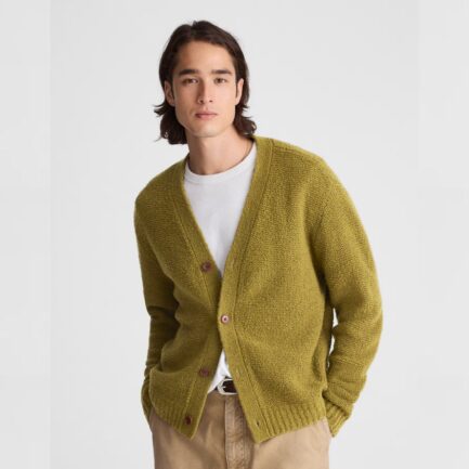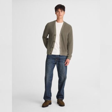 Mens Madewell Coton Shaker-Maille Cardigan Gris Vert