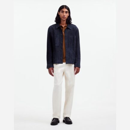 Navy Mens Madewell Suede Boxy Shirt Veste En Cuir
