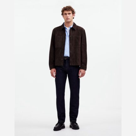 Mens Madewell Suede Boxy Shirt Veste En Cuir Marron Foncé