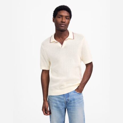 Crème Mens Madewell Contraste De Point De Johnny-Pull Col Polo