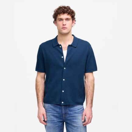Madewell Tuck-Couture De Bouton-Up Pull Mens Polo Bleu Foncé