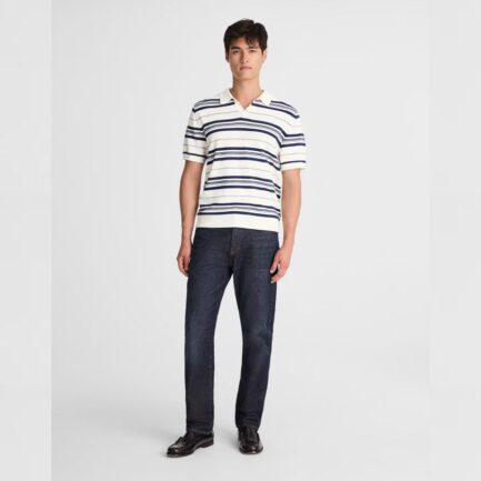 Marine / Blanc Madewell Maille Pointelle À Bouton Unique Mens Polo Pull