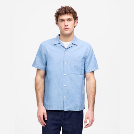 Mens Madewell Chambray Manches Courtes, Boutons Chemises Bleu