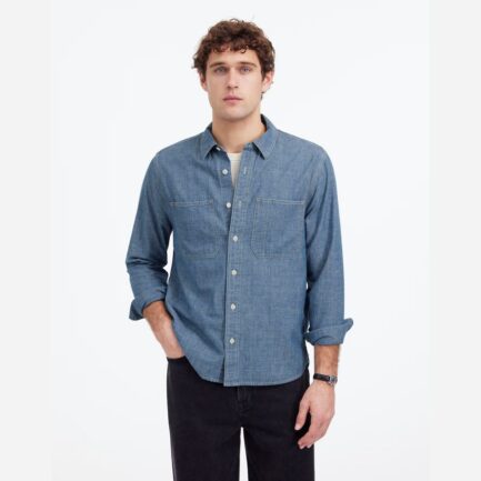 Mens Madewell Chambray Bouton-Up Des Chemises En Denim Bleu