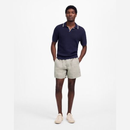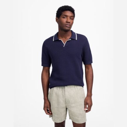Navy Mens Madewell Contraste De Point De Johnny-Pull Col Polo