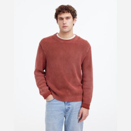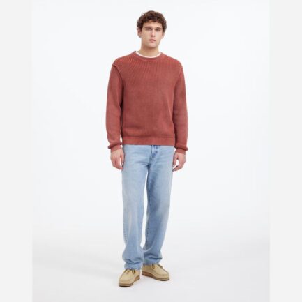 Brun Rouge Madewell Coton Shaker Point Crewneck Pull Homme