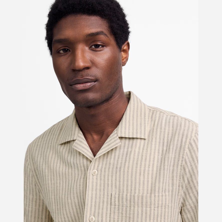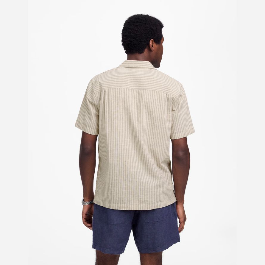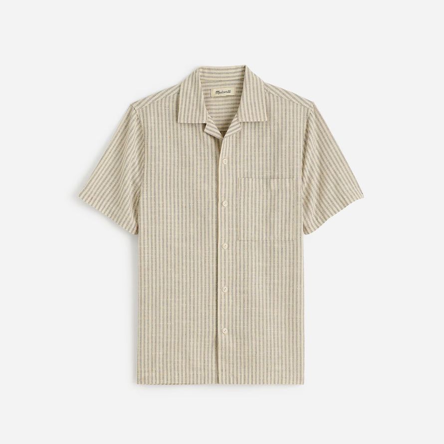 Beige Madewell À Manches Courtes, Bouton-Up Teint Bande Mens Shirts