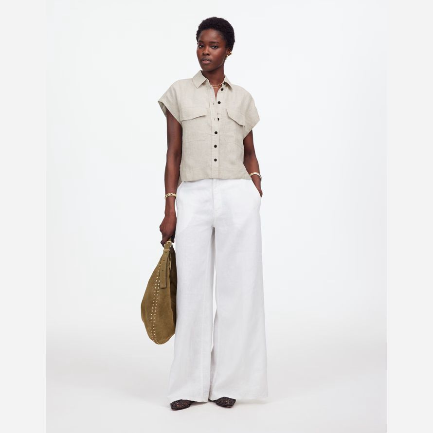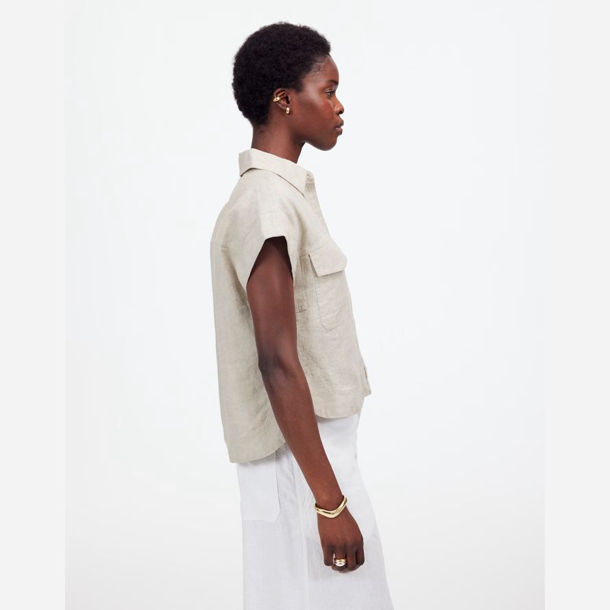 Beige Madewell Boxy-Cargo Poche À Bouton Womens Shirts