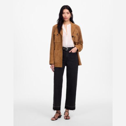 Coupe décontractée. Cultures longueur: conçu pour frapper le bas sur la cage thoracique et de montrer un soupçon de peau.La longueur du corps de haut point de l’épaule: 19 3/4″.55% coton/33% polyamide/10% laine mérinos/2% élasthanne.Col, poche rib: 50% coton/37% polyamide/11% laine mérinos/2% élasthanne.Lavez à la main.Importés.