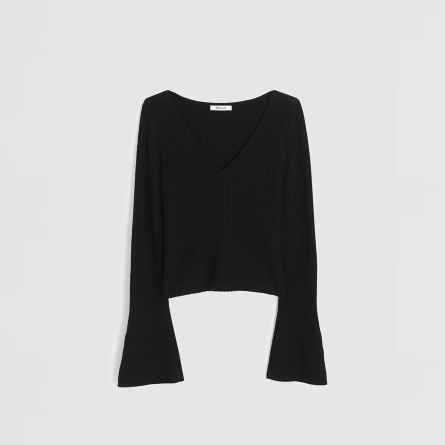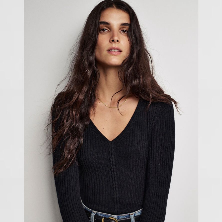 Venir en 100% laine de mérinos, ce pull côtelé haut dispose d’un profond décolleté en V et longue, évasée manches. Le flatteur slim fit le rend facile pour habiller votre favori va-out look.
