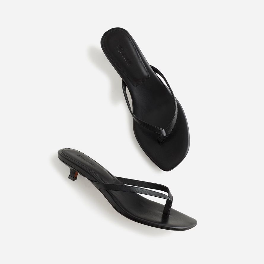 cuir thong sandal dispose d’un bout carré et praticable chaton talon.