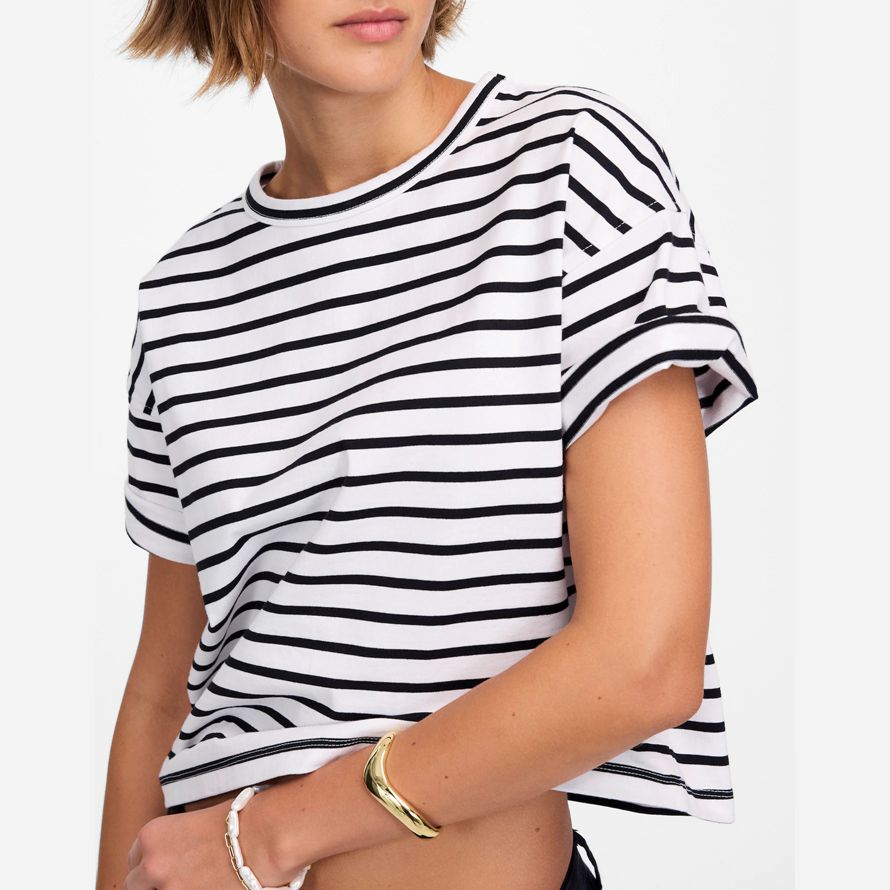 dispose d’un moderne, boxy ajustement avec une longueur rognée et structurée de la silhouette. Une élévation de l’essentiel, il dispose d’un col et des manches courtes pour un look décontractéラparfait pour la liaison avec votre jean préféré