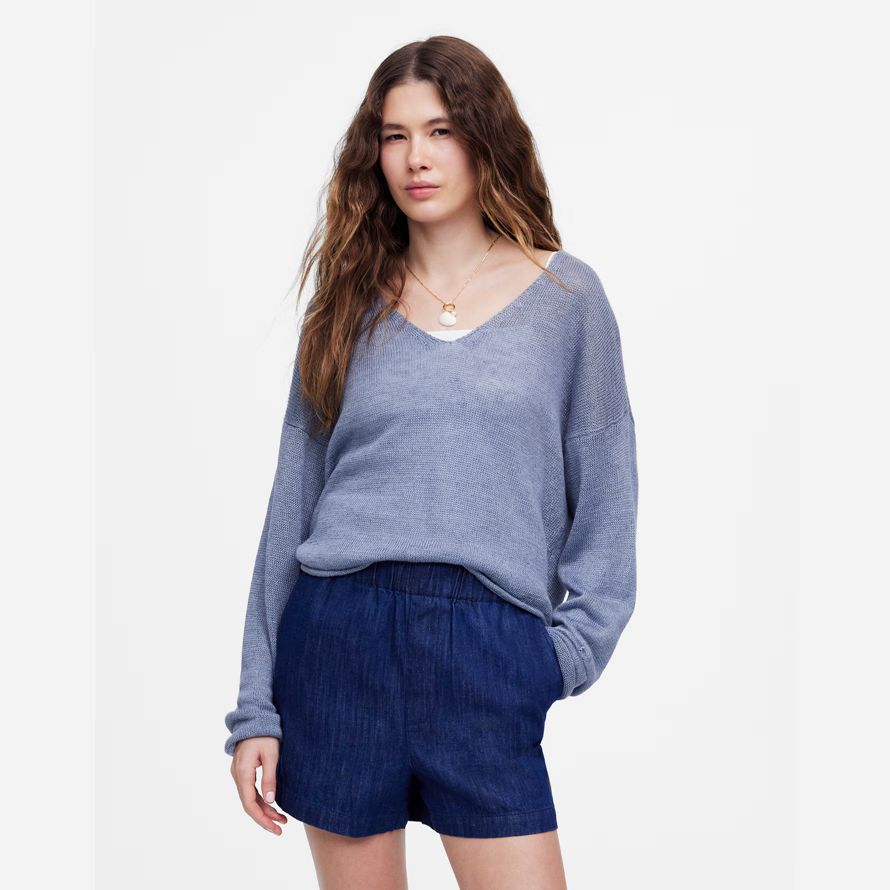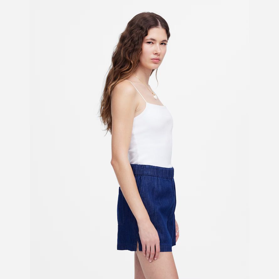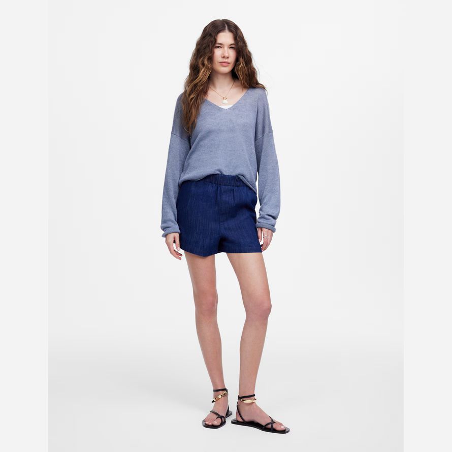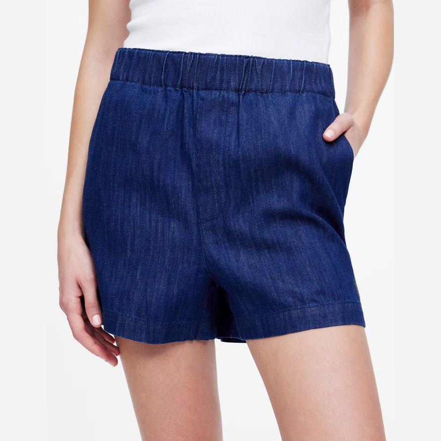 classique, ces boxer-inspiré de traction sur les shorts disposent d’un confortable élastique à la taille, dos fléchettes pour la forme, avant slash poches et une seule poche plaquée arrière. Dans la lumière et aéré en coton denim avec un soupçon de lin.