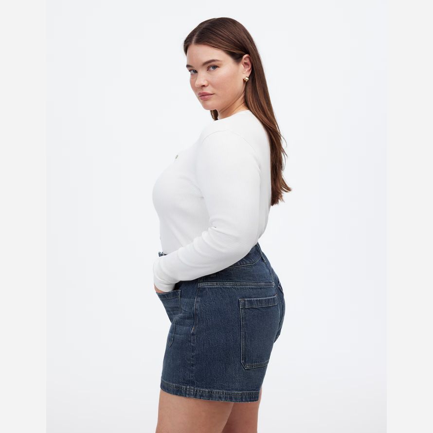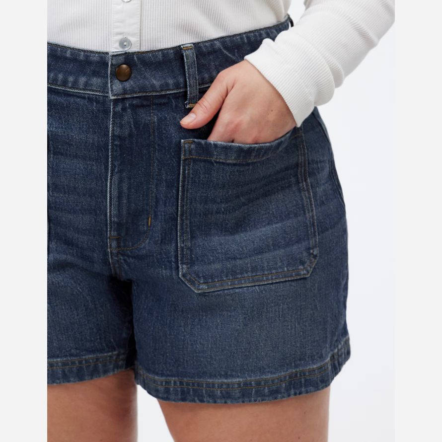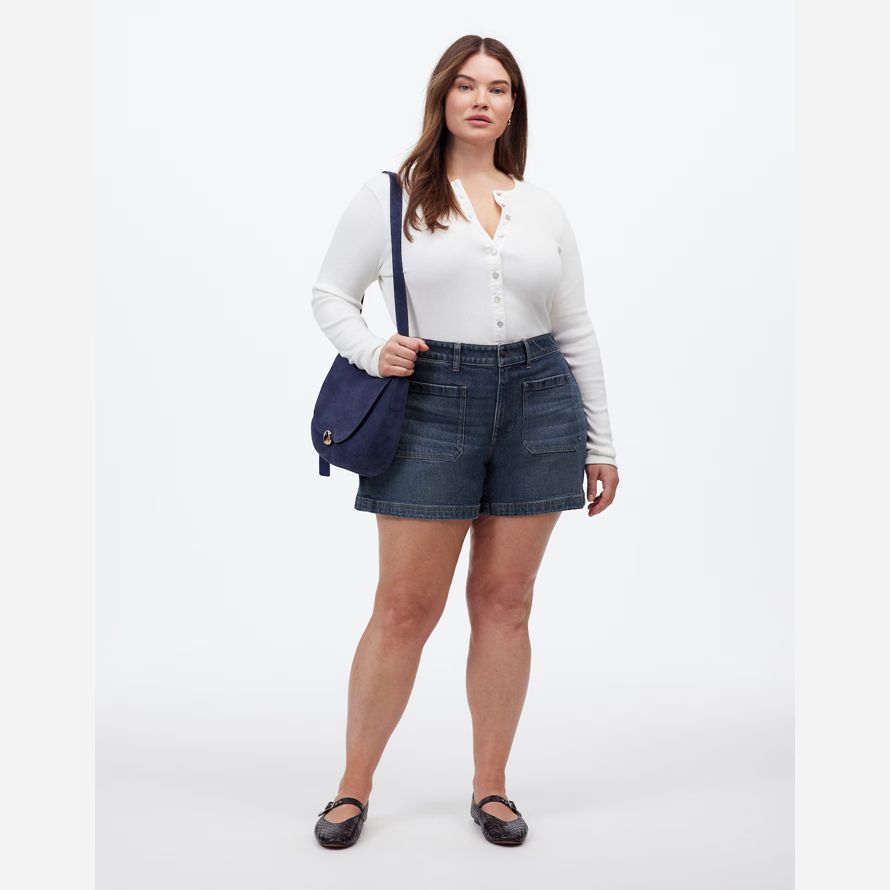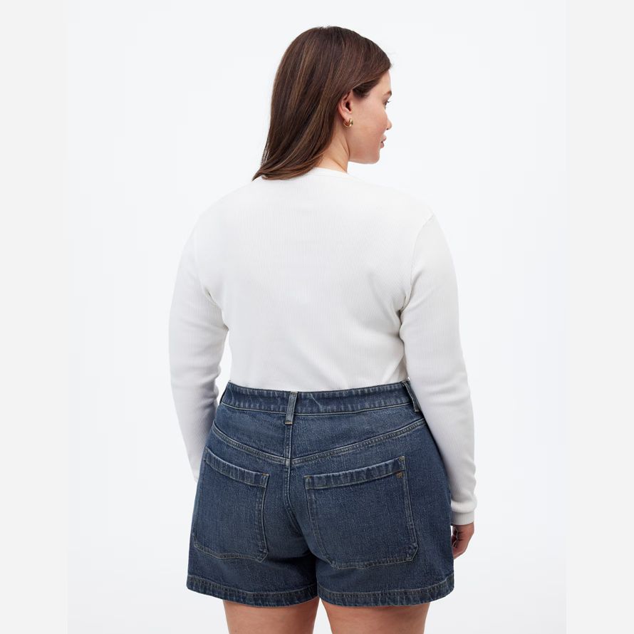 Le tissu: vintage-y structuré en denim avec une touche de stretch pour une fracture à la sensation.12″ levez-vous, 5 1/2″ entrejambe.99% coton/1% élasthanne.Laver à la Machine.Importés.