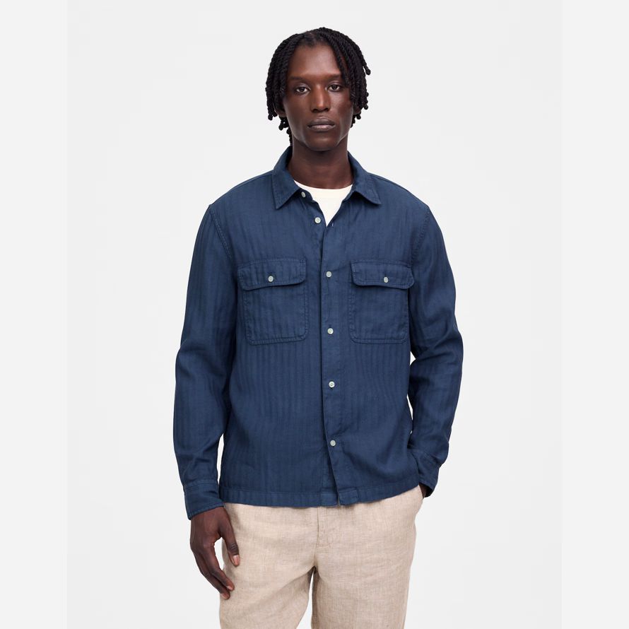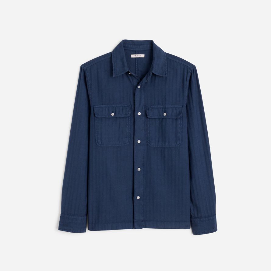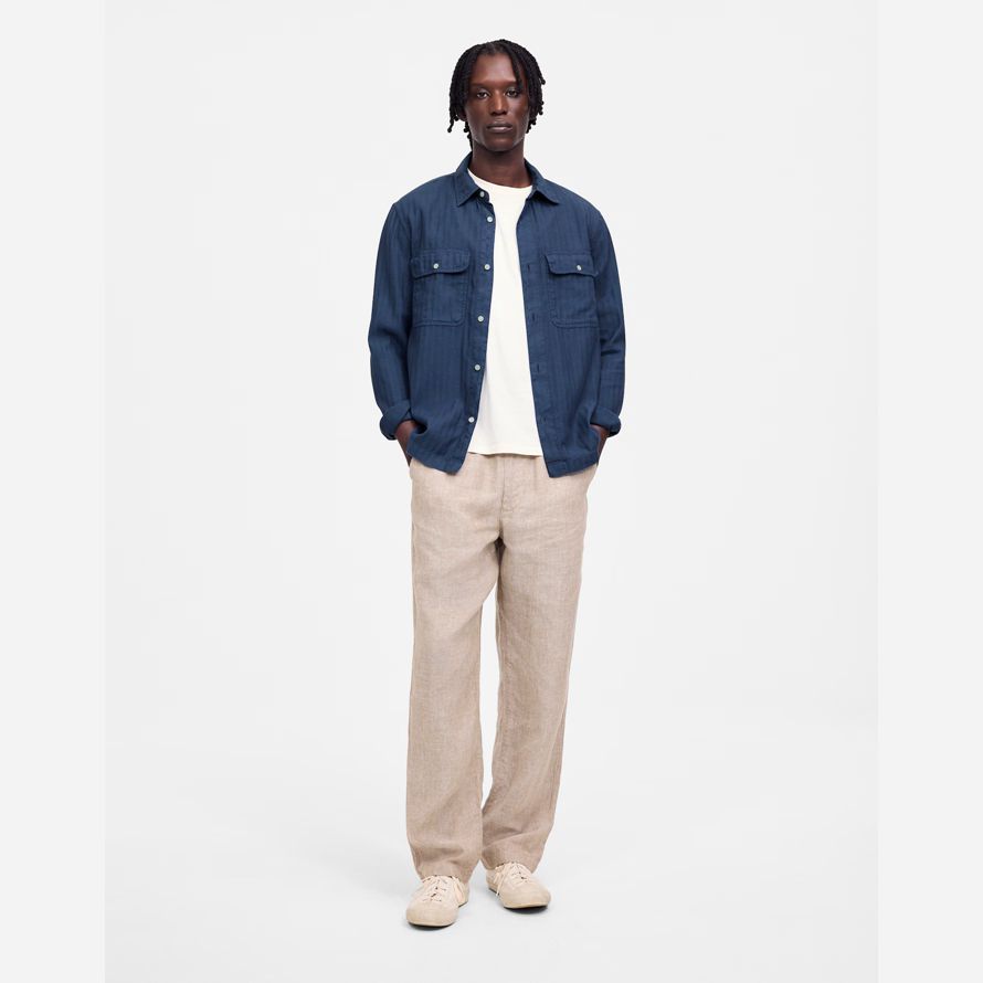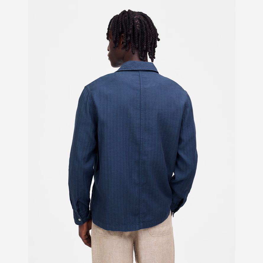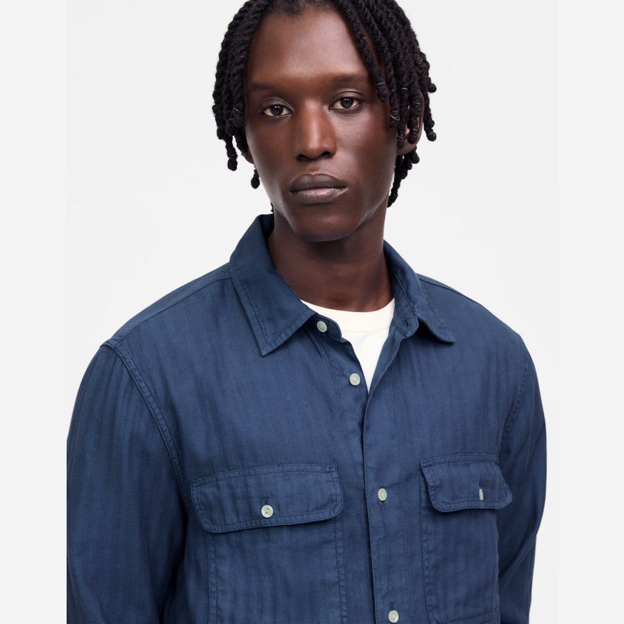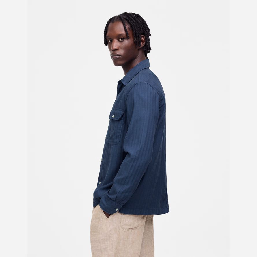 Bleu Foncé Mens Madewell Travaux De Coton, Mélange De Lin Shirts