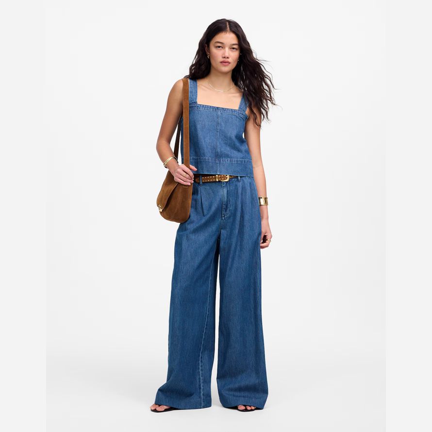 très grand les jambes pour un slouchy, élevée look. Des jeans sont conçus avec une flatteuse de grande hauteur, dans notre Aéré tissu Denim.