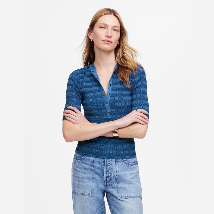 et facile texture côtelée. Complet avec henley-style snaps, de le jeter sur avec vos jeans préférés pour un look décontracté.