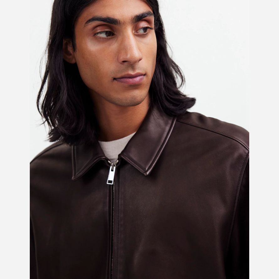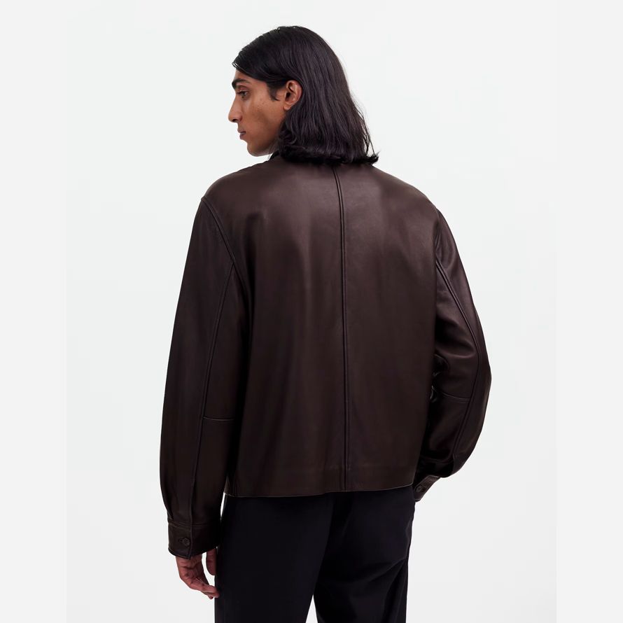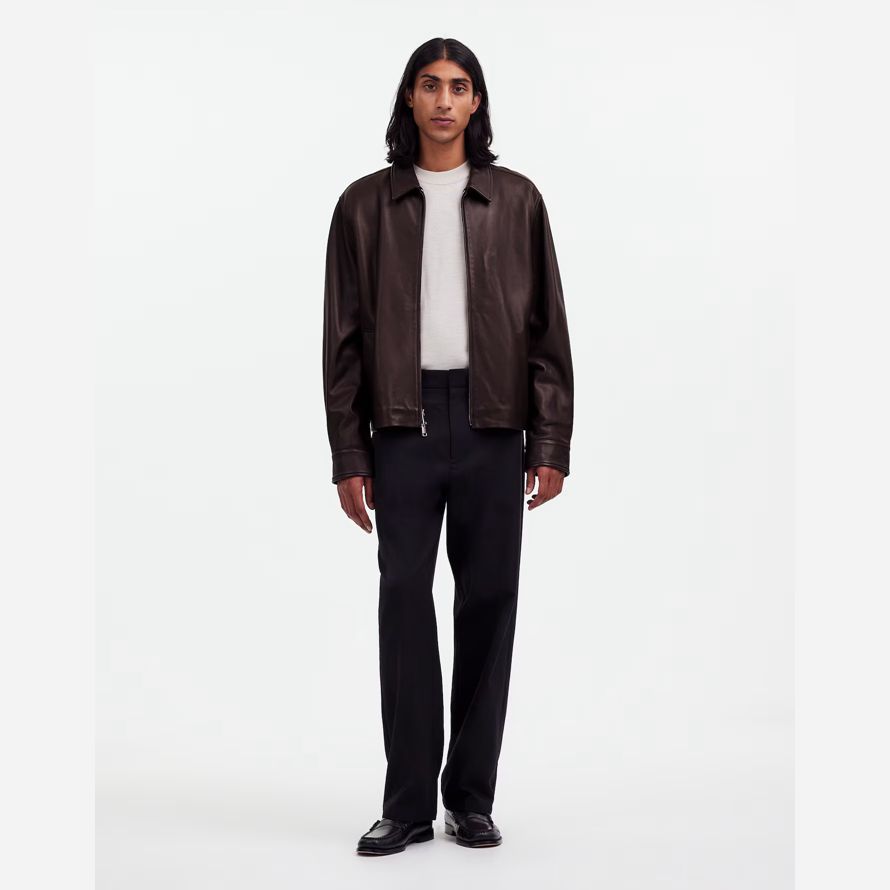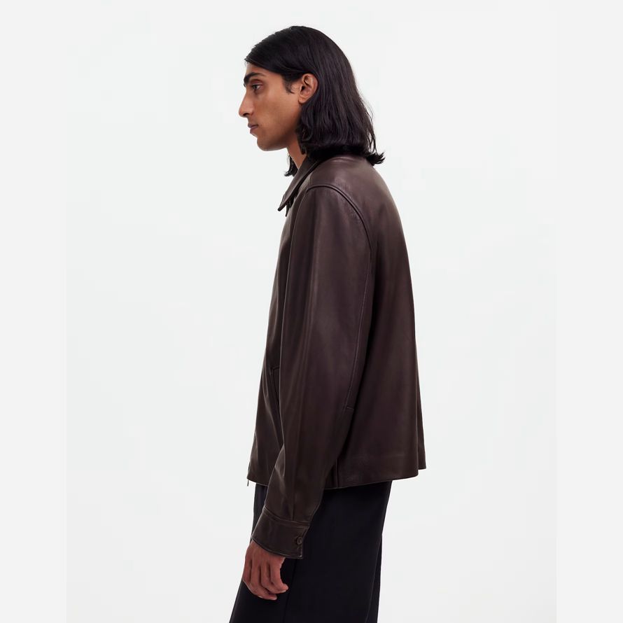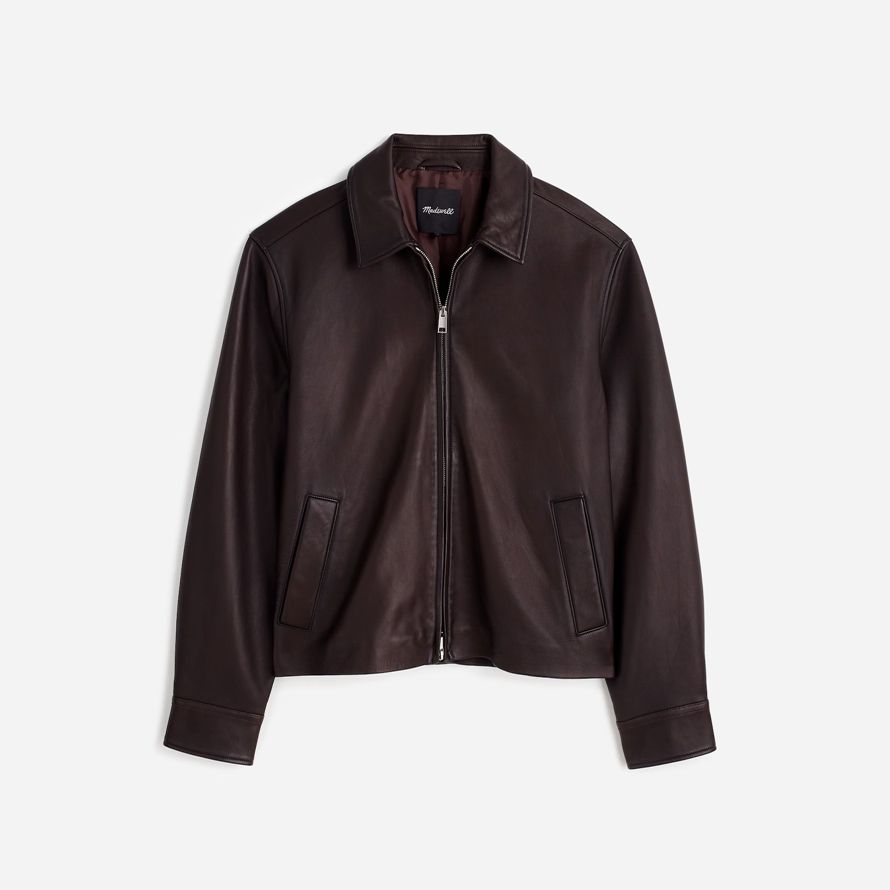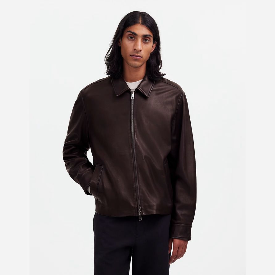 Brun Foncé Mens Madewell Zip-Face Veste En Cuir