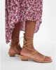 sandales offrent un bout carré, une piétonniers bloc talon et lacets à la cheville avec perle en or accents.