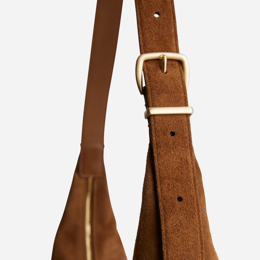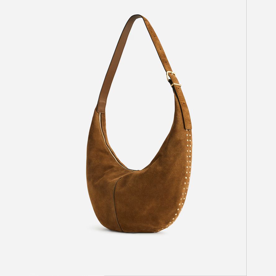 tranquillement luxe. Avec une sécurité de haut fermeture à glissière et une poche intérieure, cette slouchy, stud-embelli sac en daim est de taille parfaite pour contenir jusqu’à un iPad, une bouteille d’eau, de téléphone, porte-monnaie et des clésラde plus, il dispose d’une sangle réglable qui peut être porté bandoulière ou sur l’épaule. C’est tellement bon, qu’il est Essentiel.