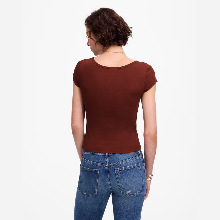 Ajustement régulier.Longueur: conçu pour frapper entre le nombril et le haut de la hanche.La longueur du corps de haut point de l’épaule: 21 1/4″.95% Regenagriᆴ certifié coton/5% élasthanne.Laver à la Machine.Importés.