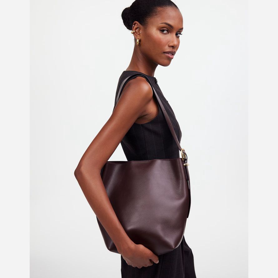 tranquillement luxe. Avec une fermeture magnétique et poche intérieure, ce seau fourre-tout est parfaitement dimensionné pour accueillir jusqu’à un iPad, une bouteille d’eau, de téléphone, porte-monnaie et des clésラde plus, il dispose d’une bandoulière réglable. C’est tellement bon, qu’il est Essentiel.