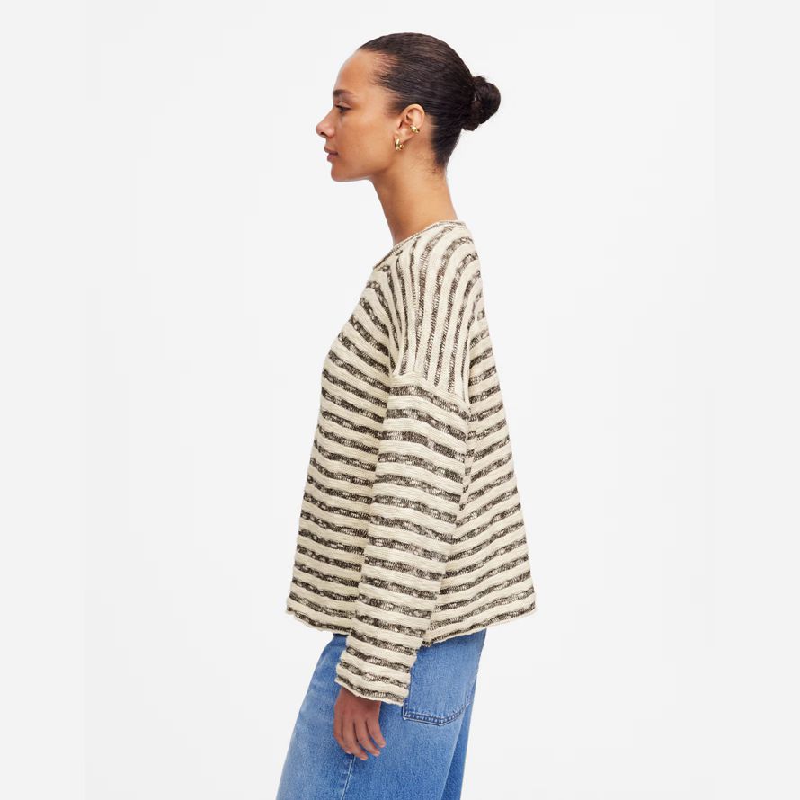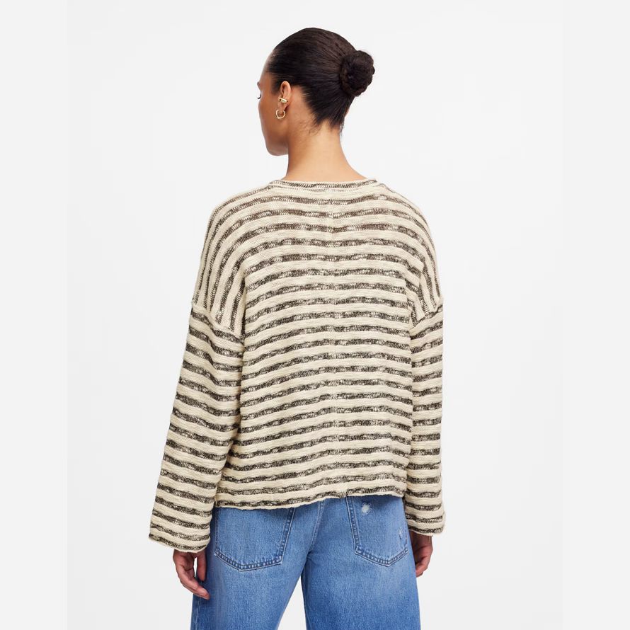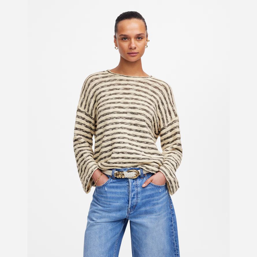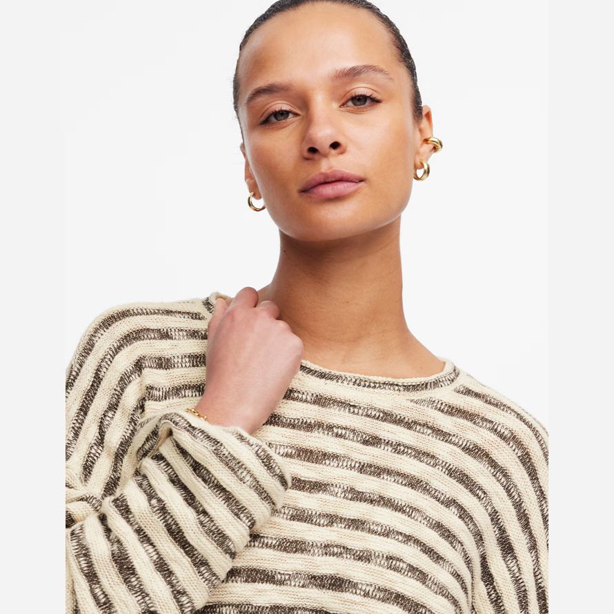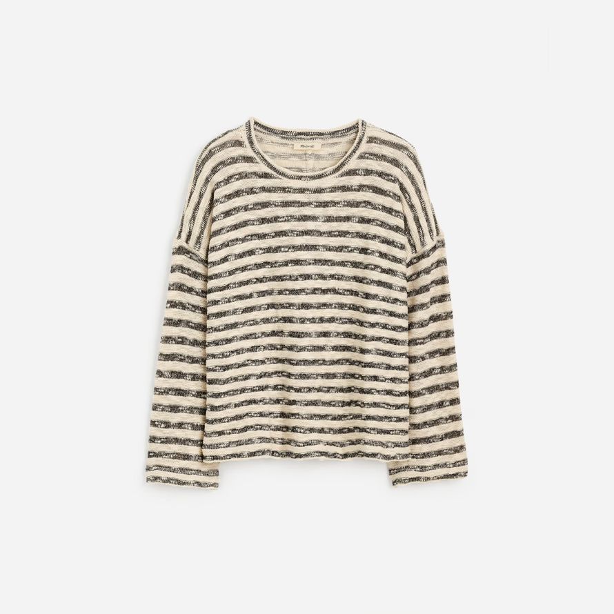 Crème / Brun Foncé Womens Madewell Encolure Ras Du Cou À Manches Longues En Tricot T-Shirts