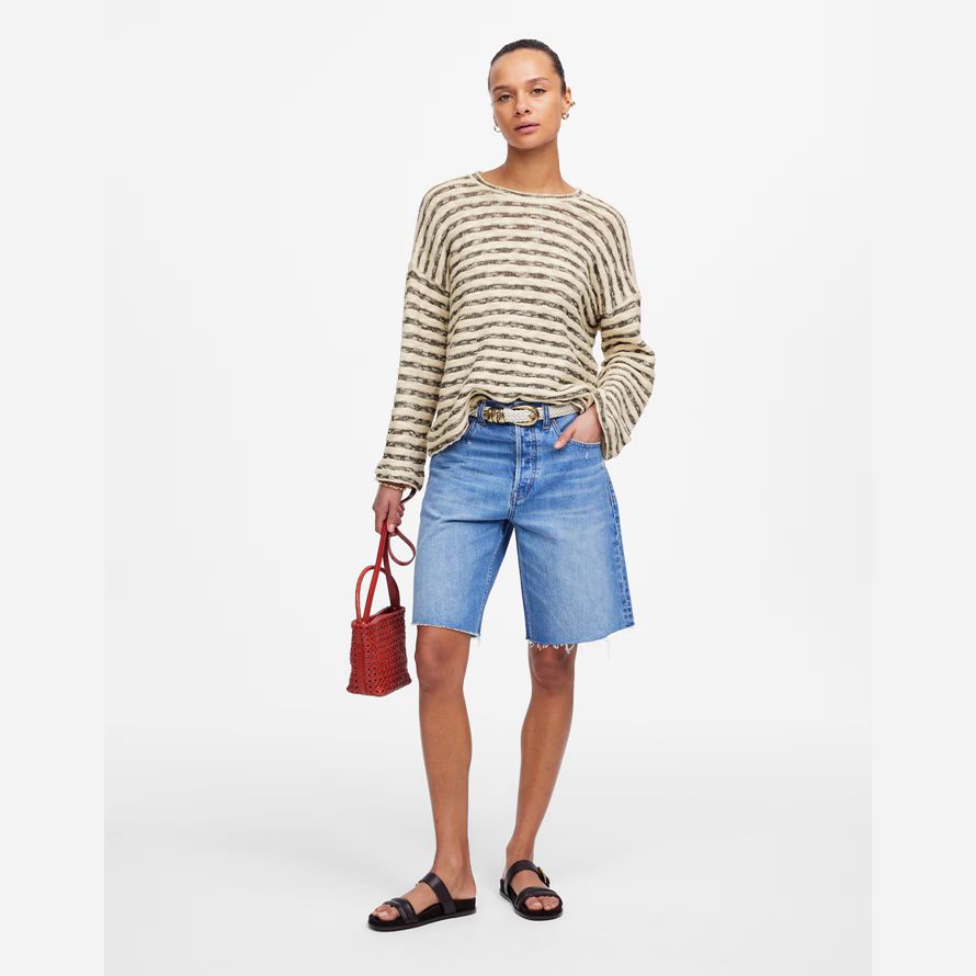 manches et détendue baisse les épaules pour un endroit frais, ample sentir. La texture, pull-comme le tricot en fait une couche facile à vivre pour les journées à la plage et au-delà.