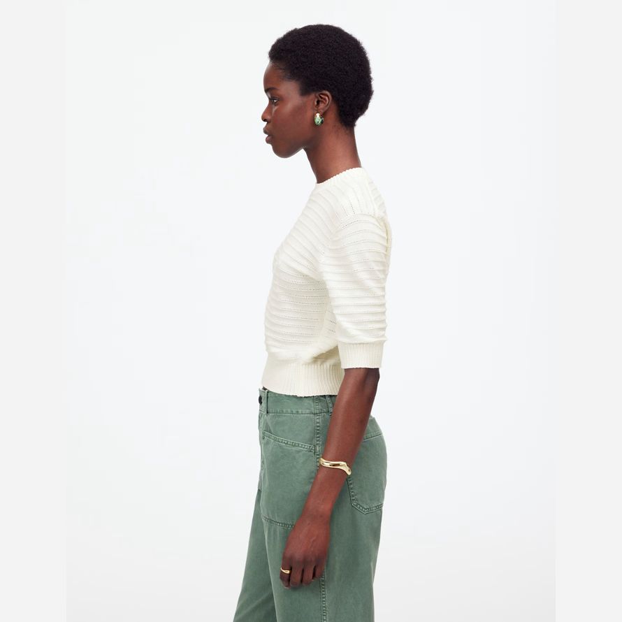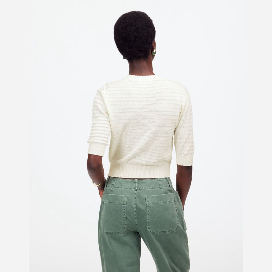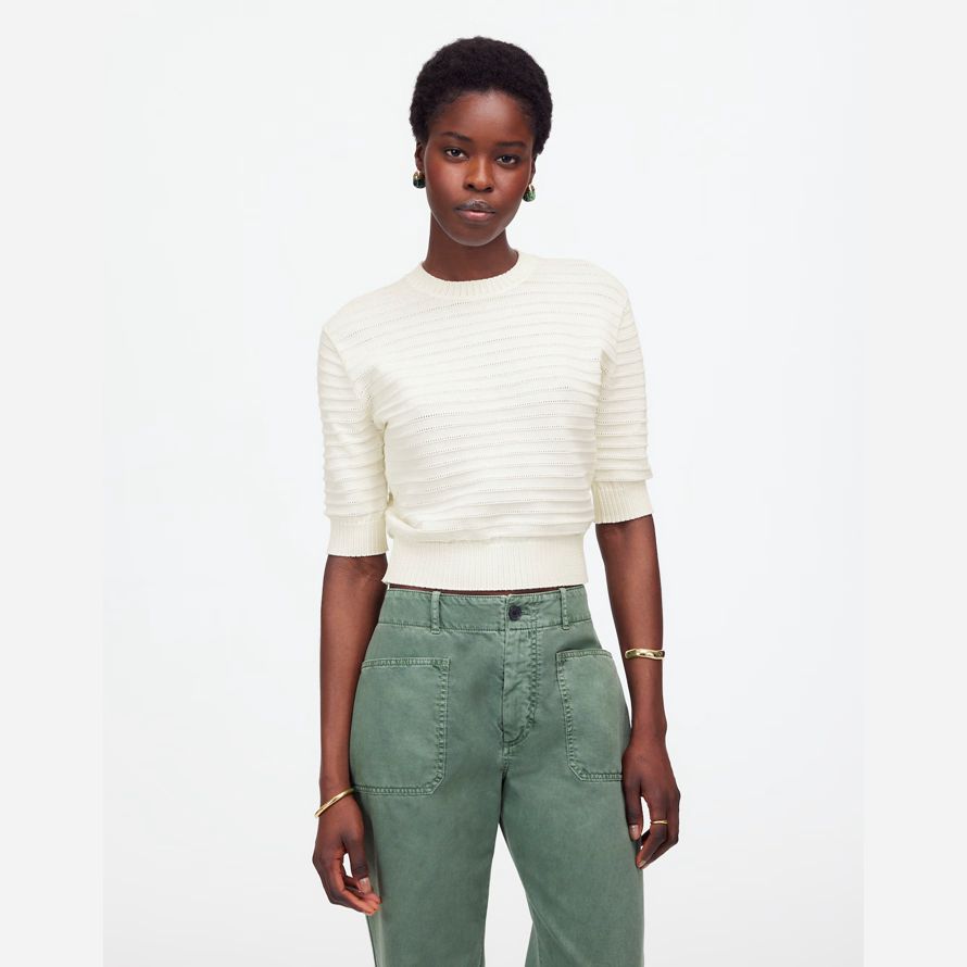 manches courtes et une texture unique point. Il est parfait pour la liaison avec faible hauteur, baggy, les jeans pour un look cool sans effort.