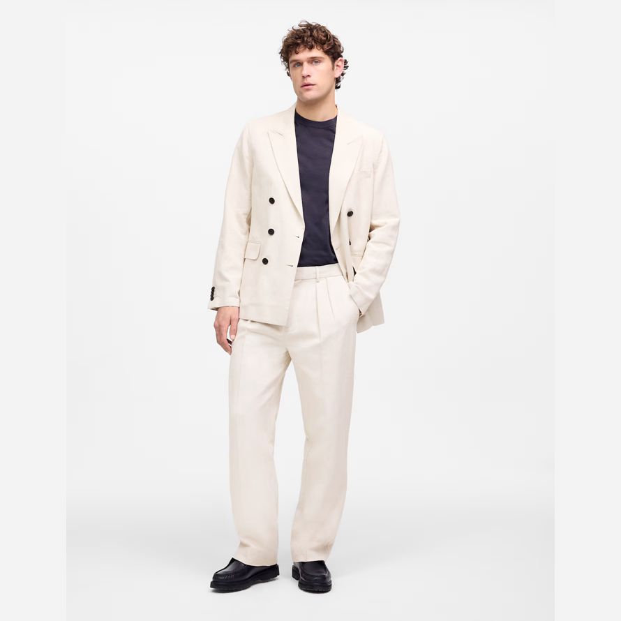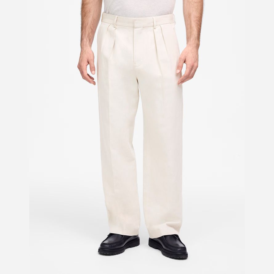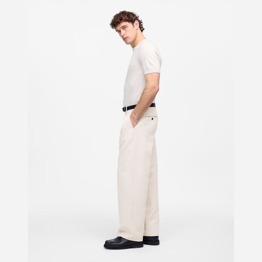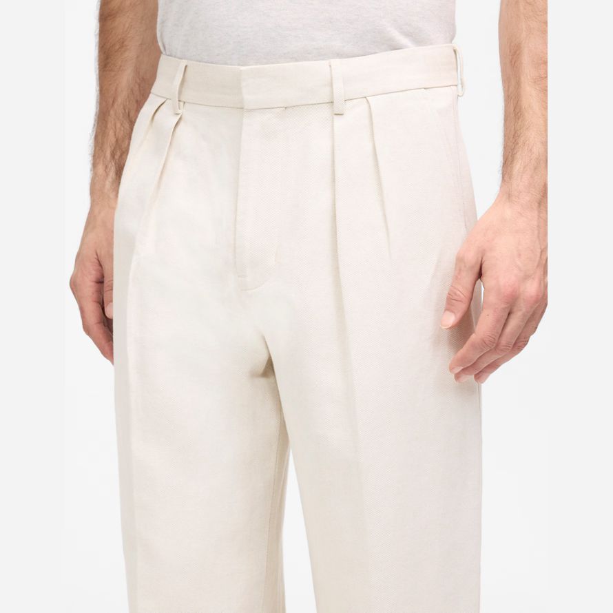 Crème Madewell Double-Plissée En Coton, Mélange De Lin Mens Pantalon