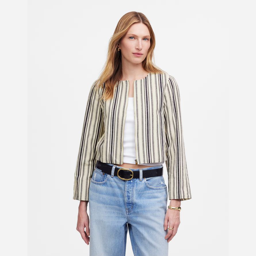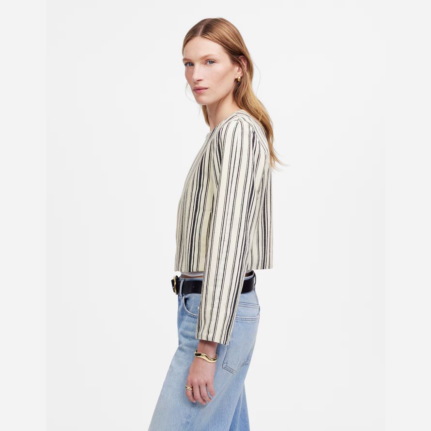 Crème / Noir Madewell Culture Cardigan En Coton-Lin Womens Vestes