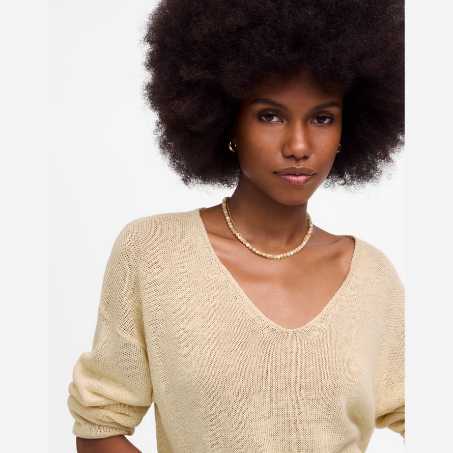 chandail. Conçu from100% lin avec un chiffon doux encolure en V, c’est d’un laid-back de superposition essentiel.