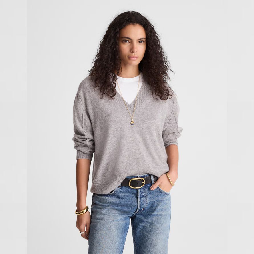 Grey Womens Madewell V En Cachemire Pull À Col