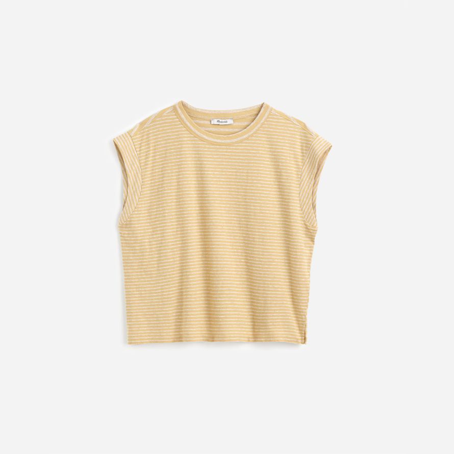 Boxy ajustement.Longueur: conçu pour frapper entre le nombril et le haut de la hanche.La longueur du corps de haut point de l’épaule: 23″.70% coton/30% lin.Laver à la Machine.Importés.